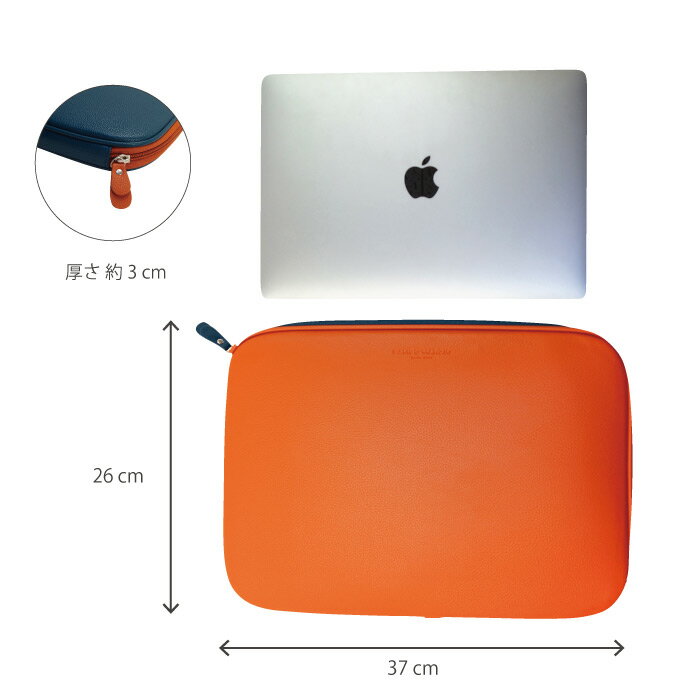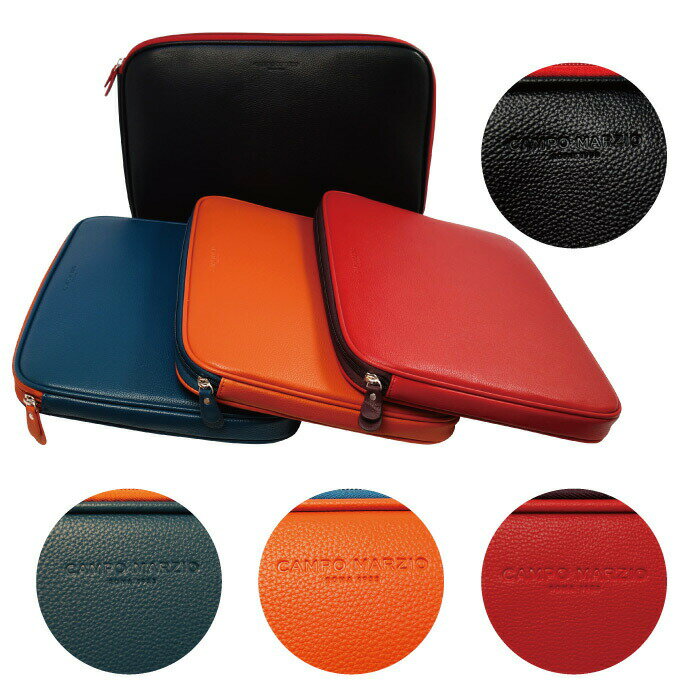 カラーブラック(ZIP レッド) レッド(ZIP アメジスト) オレンジ(ZIP ブルー) ブルー(ZIP オレンジ) サイズ縦 26cm × 横 37cm 厚さ約 3cn素材外側:合成皮革 内側:フェイクファーCAMPO MARZIO LAPTOP SLEEVEPCやタブレットを保護しながら持ち歩けるスリーブケース。