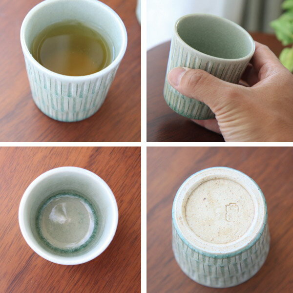 生産地 瀬戸焼(愛知県瀬戸市) 寸法 直径7.5cm×高さ7.2cm(手造りのため誤差はございます) 色 コバルト色(うすい緑色) 用途 コップ/カップ/お湯呑/ロックカップ 等 仕入までの ストーリー 毎年東京ドームにて2月に開かれる『テーブルウェア』に向けて 1年間時間をかけて、志向錯誤をデザインし生成しました。