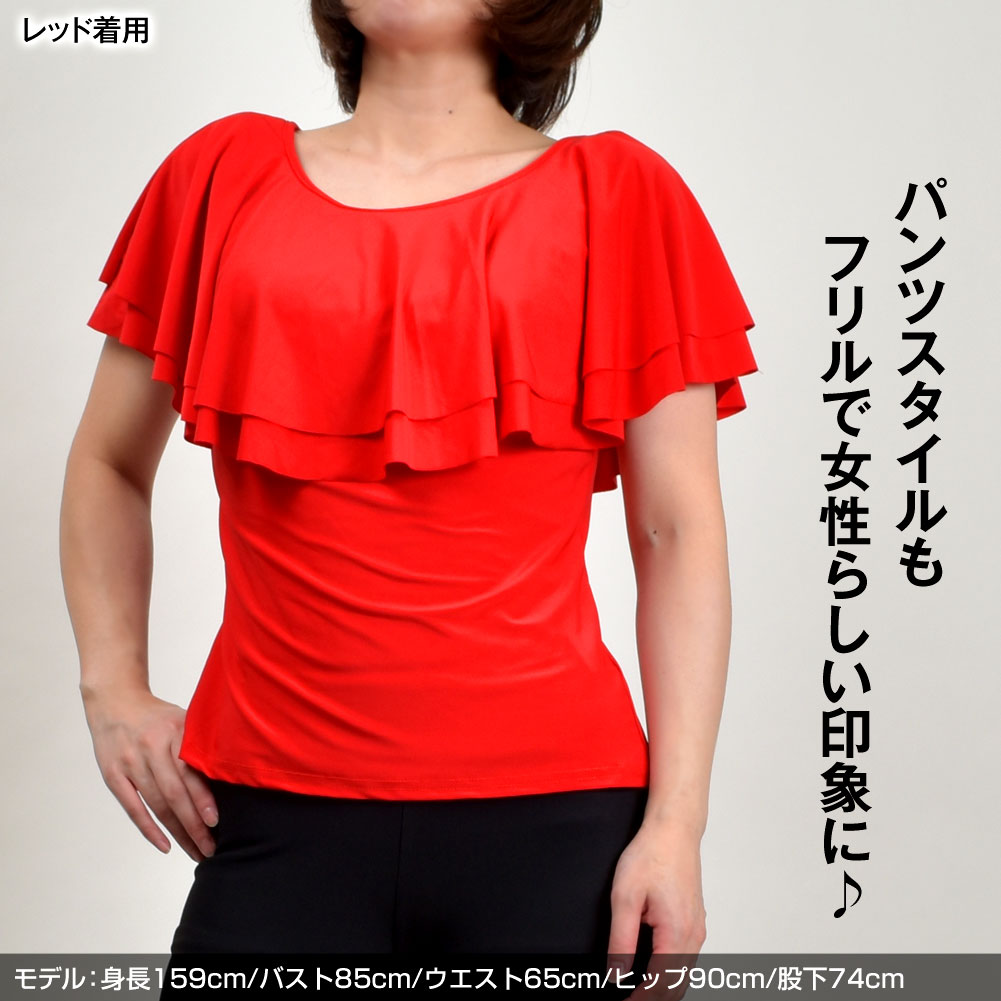 ■半袖Tシャツにフリルが付いたようなデザイン! ■薄手で伸縮性のある生地です。