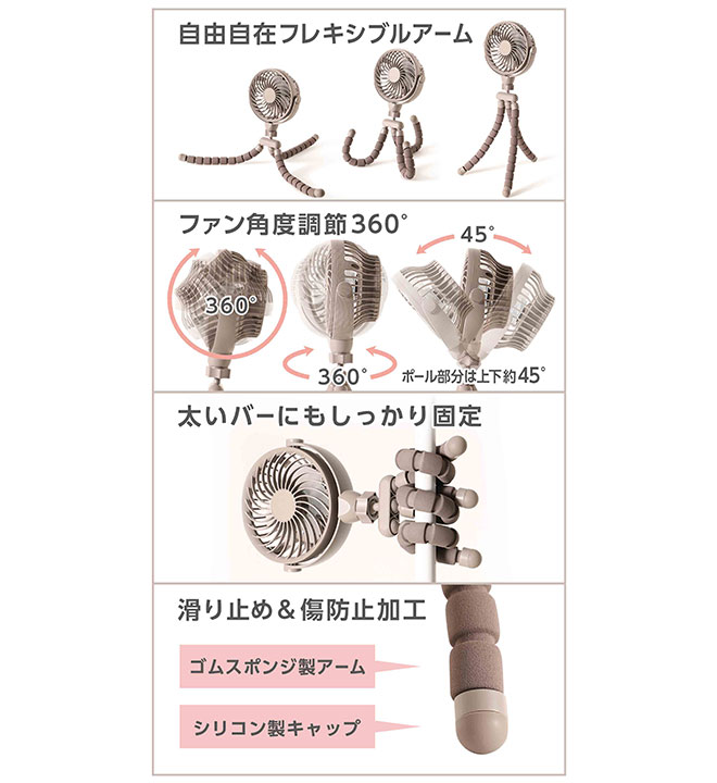 扇風機 卓上 USB どこでも設置 卓上扇風機 角度調整 小型 持ち運び 携帯 コンパクト 車 オフィス ファン ミニファン ミニ扇風機 くねくねファン くねくね ベビーカー キッチン 脱衣所 トイレ 散歩 運動 作業 熱中症対策 ☆