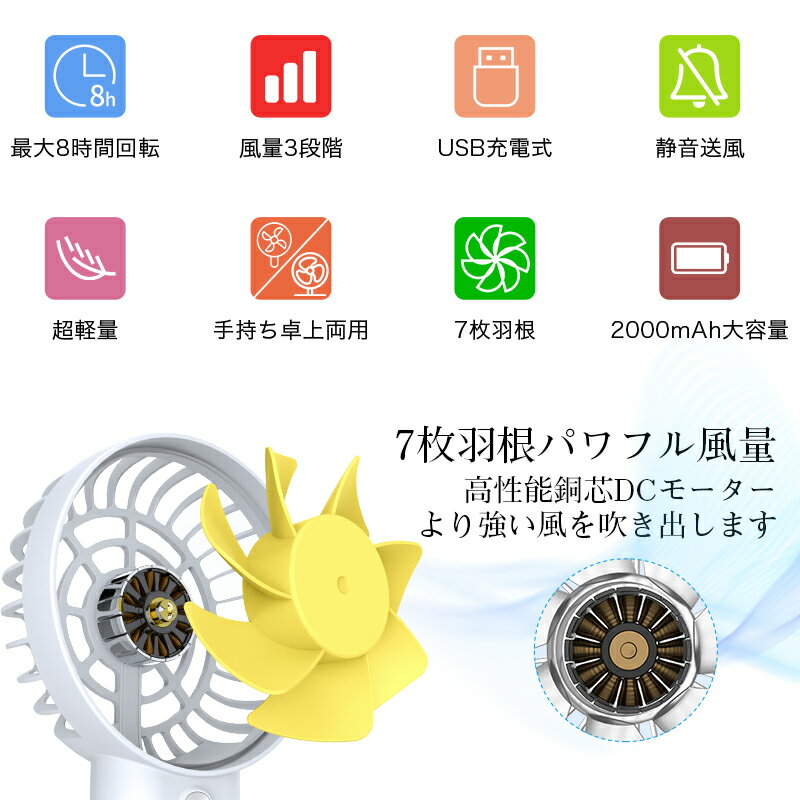 扇風機 ミニ扇風機 携帯扇風機 ハンディファン 手持ち扇風機 ハンディ扇風機 小型 軽量 USB 持ち運び 充電式 ベビーカー 持ち運び 運動会 体育祭 イベント ライブ会場 卓上 軽い 強力 強風量