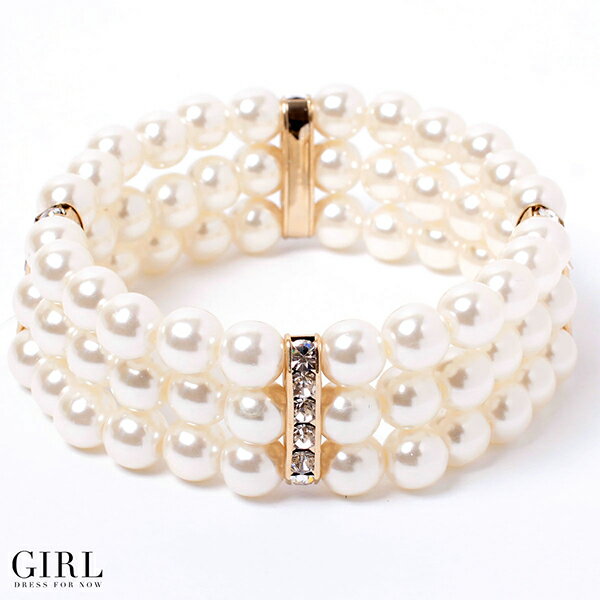 【メール便送料無料】ブレスレット 結婚式 パーティーブレスレット バングル パーティドレス GIRLドレス 結婚式 パールアクセサリー パール ピアス 三連パール×ゴールドラインストーンブレスレット【dsgr-n-k-802】
