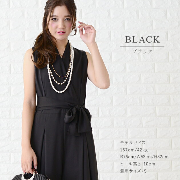 ノースリーブ オールインワン パンツドレス パーティードレス レディース ノースリーブ ウエストリボン ワイドパンツ 体型カバー 脚長効果 結婚式 披露宴 お呼ばれ 上品 20代 30代 春 夏 秋 ブラック ベージュ お呼ばれ 他と被らない